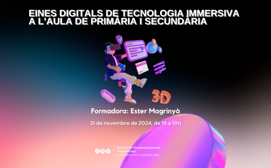 El passat 21 de Novembre l’Esther Magriñà ens va oferir un webinar de Tecnologia Immersiva, en aquest ens va destacar el potencial de la realitat virtual i augmentada en l’educació digital. Es van explorar eines com CoSpaces per crear continguts interactius i projectes interdisciplinaris en diverses assignatures adreçat especialment a alumnes d’Educació Primària, a partir de cinquè i d’Educació secundària.