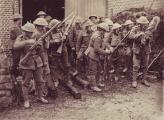Fotografia oficial británica: Front britànic occidental de França. Grup d’assalt preparant-se per moure’s en una ràtzia diürna