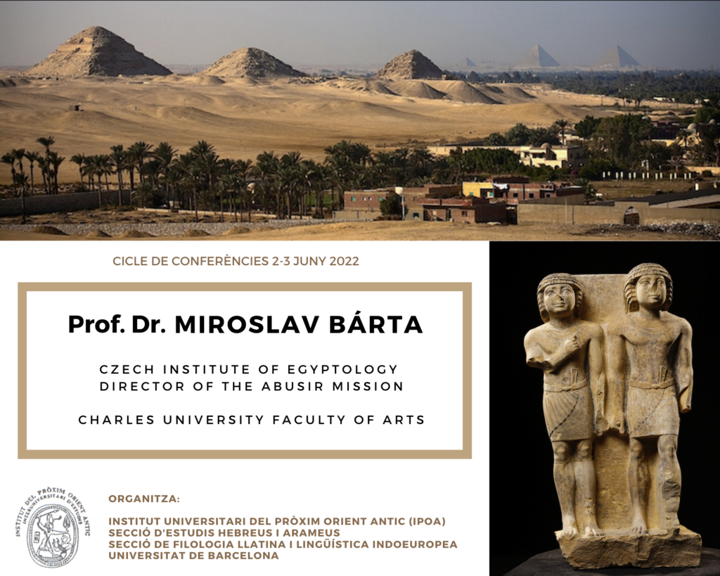 Los días 2 y 3 de junio de 2022 se celebrará un ciclo de conferencias del Prof. Dr. Miroslav Bárta (Czech Institut of Egyptology, Director of the Abusir Mission – Charles University Faculty of Arts), organizado por el IPOA y las Secciones de Estudios Hebreos y Arameos, Filología Latina y Lingüística Indoeuropea.