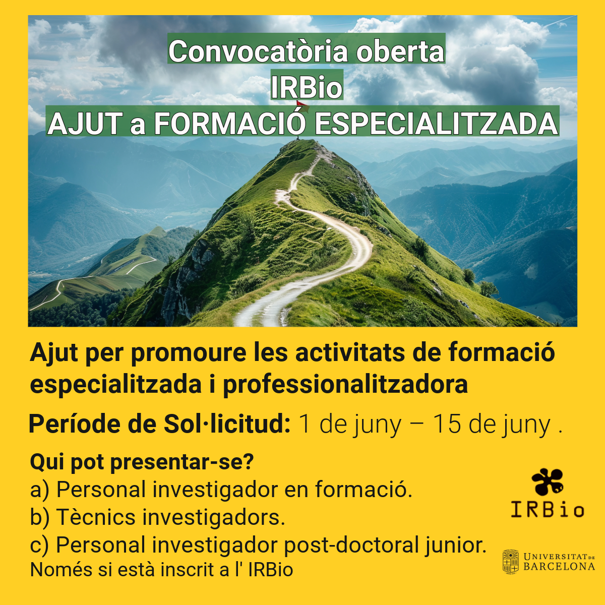 Ajut IRBio per FORMACIÓ ESPECIALITZADA