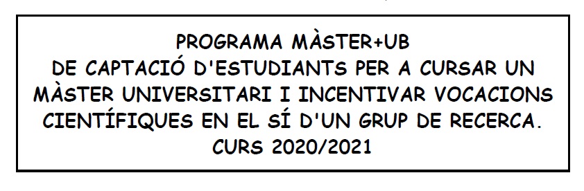 Programa Màster+UB de captació d’estudiants per a cursar un màster universitari i incentivar vocacions científiques en el sí d’un grup de recerca. Curs 2020/2021