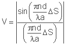 Esto da lugar a una estructura de franjas con la misma interfranja que si hubiese una sola fuente pero menos contrastadas. El factor de visibilidad es: Como antes, la interfranja no varía pero la visibilidad de las franjas pasa a ser: |