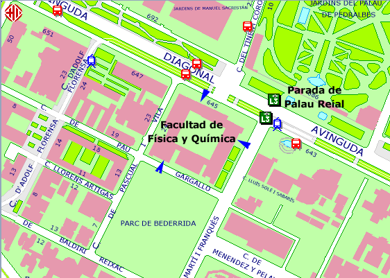 Tranvía: TramBaix líneas 1, 2 y 3 (parada Palau Reial); precio del billete sencillo 1.10 Euros
