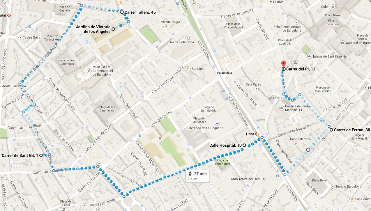 Si vols veure de primera mà com era el treball que es realitzava al taller d’Antoni Tarrés, et proposem una ruta breu, que comença en aquest mateix lloc on ets. Des d’aquí, passaràs per cinc punts del centre de Barcelona on encara avui podràs admirar l’art de les obres creades en aquest taller.