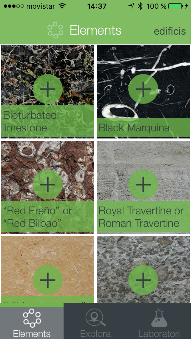 En aquest apartat es mostra en detall la informació de l’edifici o la roca que l’usuari hagi seleccionat. Si se selecciona un edifici, l’aplicació mostra tota la informació relacionada amb les roques amb què va ser construït, així com una breu explicació de les característiques històriques de la construcció. Per a cadascuna de les roques que formen part de l’edifici, a part d’explicar-ne les característiques, l’app també recull com es va formar, d’on es va extreure, quines utilitats se li han donat, quina edat té i si hi ha altres edificis inclosos en l’aplicació on es pugui trobar el mateix tipus de roca.