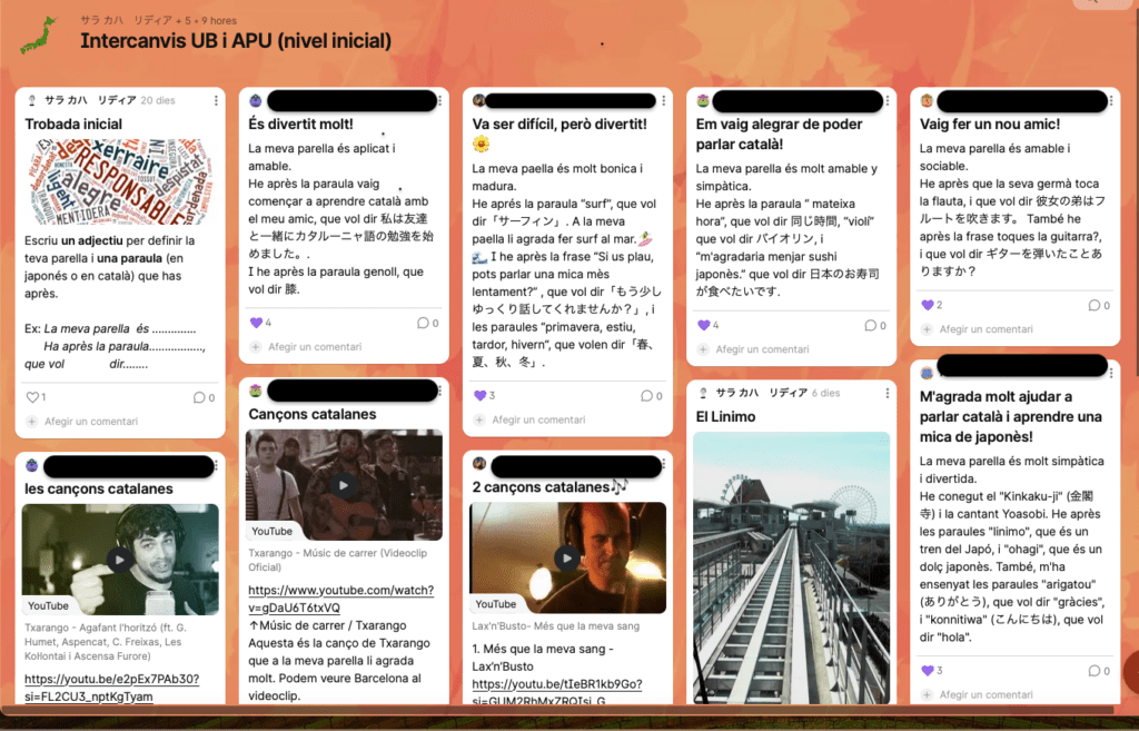 Per això aquest semestre crearem nou parelles d’intercanvi lingüístic i cultural entre estudiants de la UB interessats en el japonès i la cultura nipona i estudiants de la Universitat Provincial d’Aichi que volen millorar la seva fluïdesa en català. Farem una primera trobada conjunta (us comunicarem el dia i l’hora als estudiants inscrits) on ens coneixerem i us donarem pautes i consells. Després cada parella haurà de trobar-se virtualment almenys cinc vegades al ritme que vulgui i en l’horari que convingui als participants.