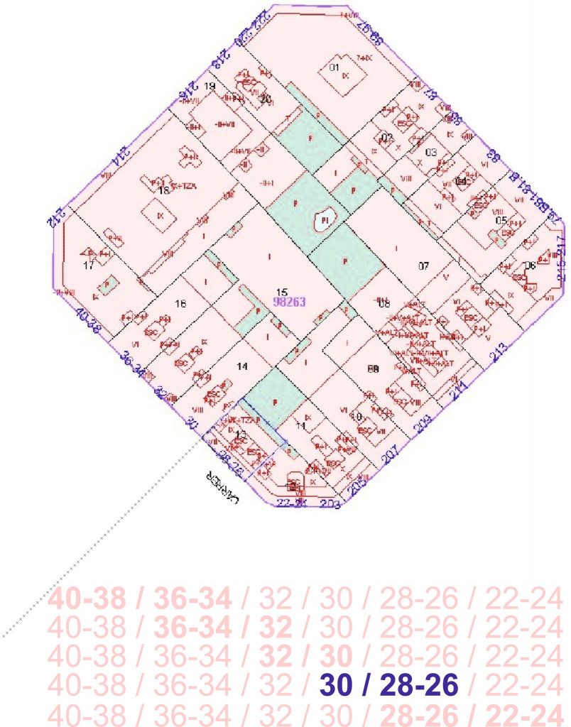 30/28-26. Quiere señalar una línea precisa, definida por el encuentro de dos fachadas contiguas.