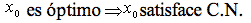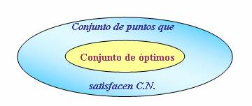 Cuando ya hemos determinado el conjunto de puntos que satisfacen la C.N. es necesario ver qué puntos satisfacen la condición suficiente (C.S.), es decir, qué puntos son los verdaderos óptimos.