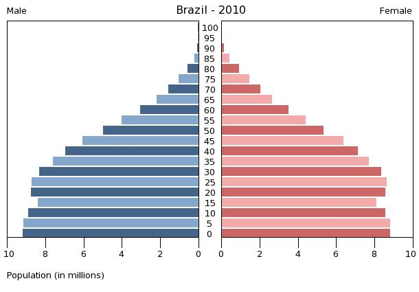 Información sobre población Brasileña desde 1950 hasta 2010 y proyecciones hasta 2050: indicadores demográficos, Población a mediado de año, Tasa de fecundidad, Natalidad, Mortalidad, Esperanza de vida, Mortalidad infantil y Migración