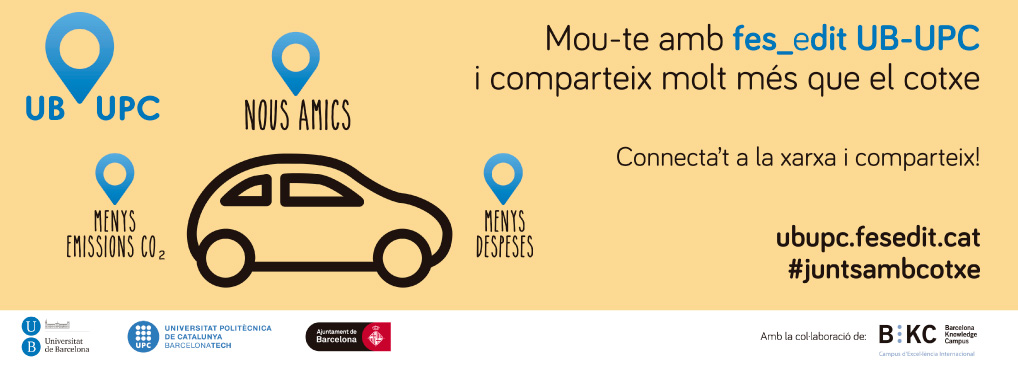 Fesedit UB-UPC és la xarxa social de la UB i la UPC que connecta conductors i passatgers que volen compartir viatge en cotxe per anar o tornar de la universitat o a qualsevol altre punt.