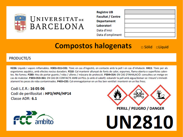 1,3-Dicloro-4-nitrobencè CAS: 0611-06-03FÓRMULA: C6H3Cl2NO2 GRUP: Compostos halogenatsSUBGRUP: Dissolvents halogenats CONTENIDOR(S) Bidons químics boca petita (10 i 5 litres) ETIQUETA