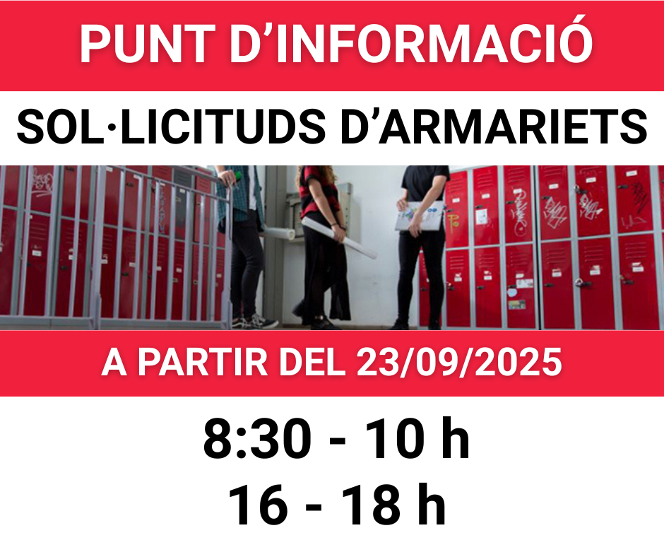 Els armariets es podran sol·licitar al PUNT D’INFORMACIÓ a partir del 23 de setembre de 2025