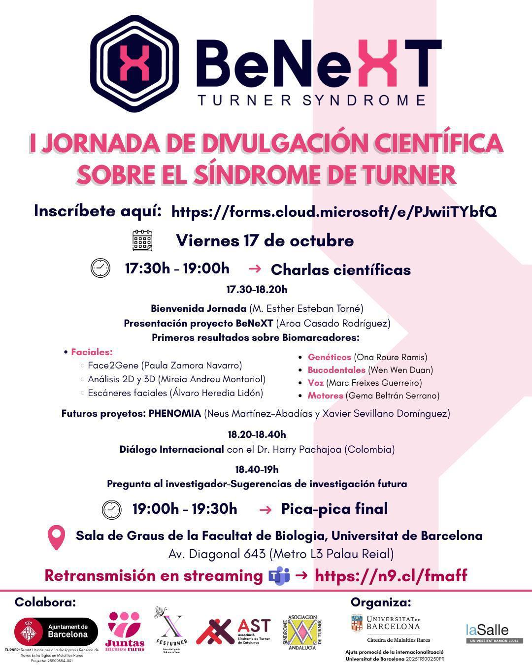 Durant la jornada es presentaran els primers resultats del projecte BeNeXT, i es comptarà amb la participació destacada del Dr. Harry Pachajoa, genetista clínic de la Universidad ICESI de Cali (Colòmbia), qui compartirà la seva experiència en l’àmbit de les malalties rares.
