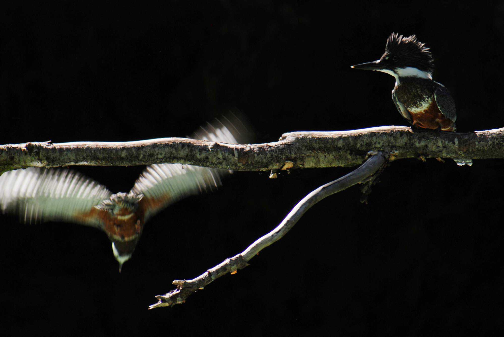 "Aquesta parella de bernats pescaires grans (Megaceryle torquata), molt més gran que l’espècie europea (Alcedo atthis), ens va delectar nos amb uns quants intents de pesca damunt les aigües turqueses d’origen glaciar d’un riu dels Andes patagònics. Una senyora argentina també els va contemplar admirada i ens va dir: '¿vieron al que quedó en la rama? ¡parese un loco con esos pelishos!'."