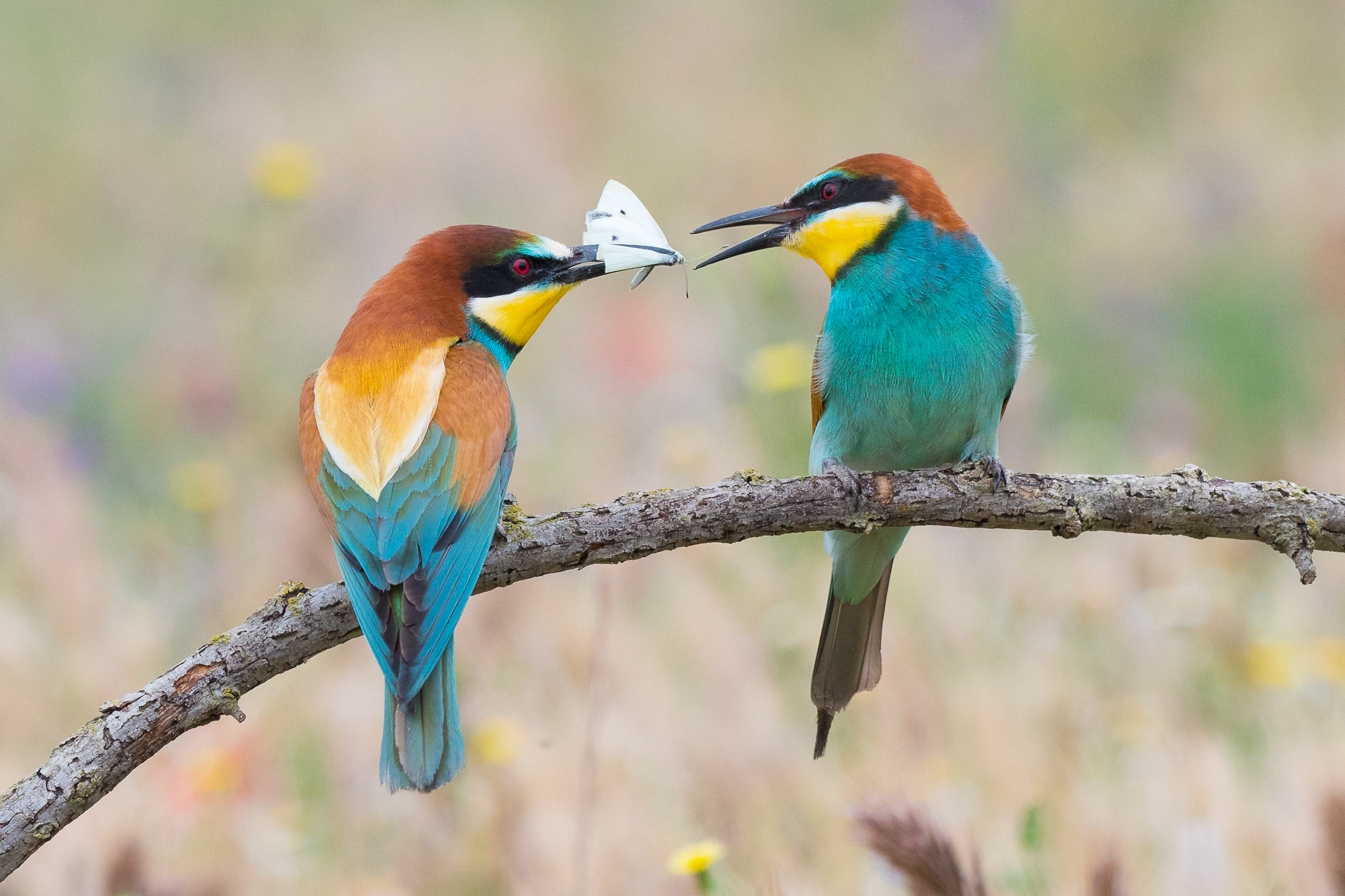 "Aquests moments primaverals són especialment adequats per observar l’explosió de la natura. Un exemple clar d’aquesta circumstància són els abellerols que per aquestes èpoques ens visiten i omplen de color i del seu cant tan característic els nostres camps. Abans de la còpula, el mascle fa una sèrie d’ofrenes a la femella per conquistar-la i així culminar una fase de vital importància pel seu cicle."