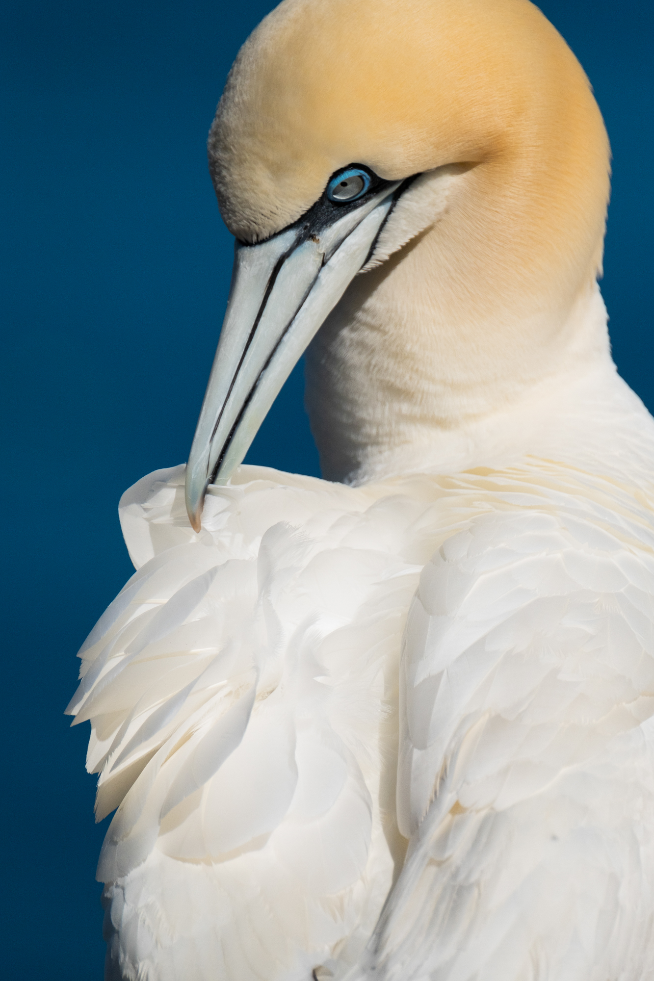 "Una colònia de cria de mascarells (Morus bassanus) és un bullidor amb milers d’aus que, amb la seva activitat, ens ofereixen infinitat de bells moments per observar, gaudir i fotografiar. La gran quantitat d’exemplars t’obliga a estar molt atent i adoptar postures inversemblants per poder capturar imatges com aquest empolainat, sense que altres aus molestin en la presa. Per suposat un bon teleobjectiu ajuda molt per aconseguir aquests plànols tancats."