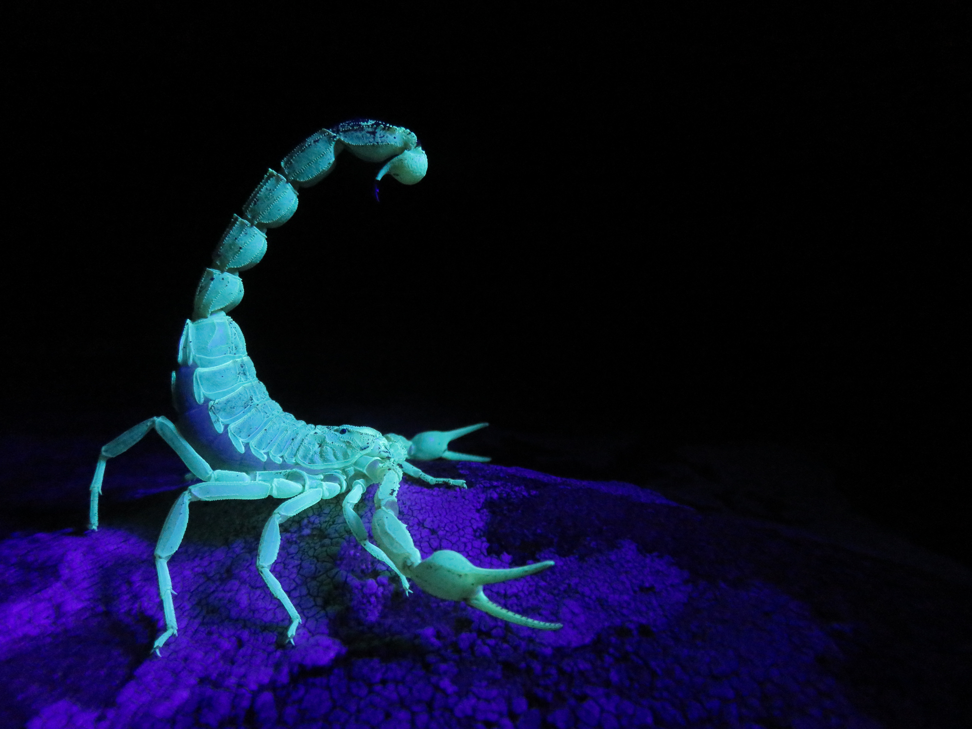 "Per si no eren prou amenaçadors, els escorpins encara amaguen una qualitat extraordinària: el seu exoesquelet brilla sota la llum ultraviolada. Encara no se sap del cert el motiu, però aquest fet ens facilita el trobar-los de nit."