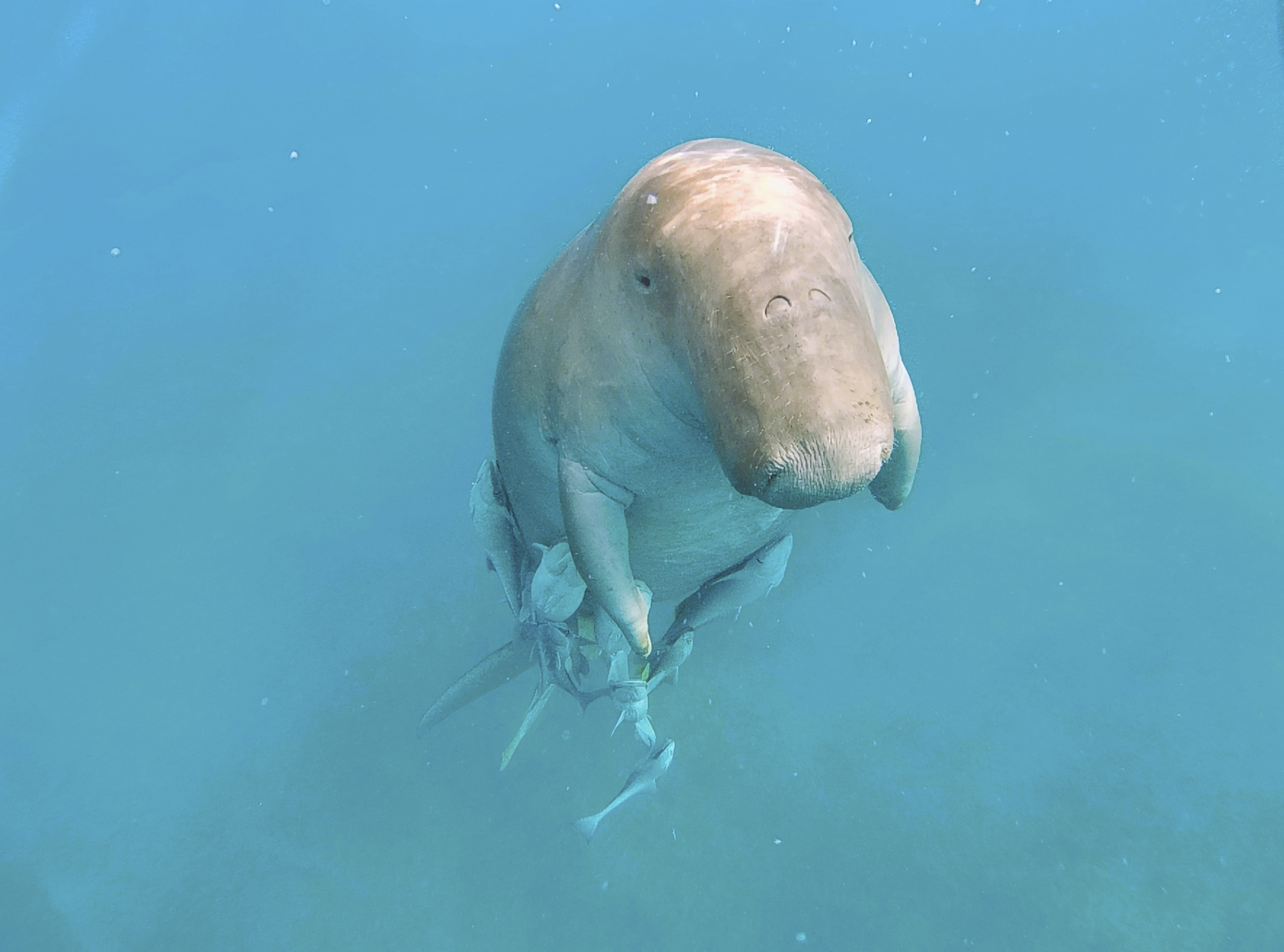 "El dugong (Dugong dugon), és el més menut de les 4 espècies de sireni actuals. L'espècie moderna més propera, la vaca marina de Steller (Hydrodamalis gigas) va ser caçada fins l'extinció al segle XVIII, en només 27 anys des de la seva descripció. El dugong també ha estat caçat durant mil·lennis, les seves poblacions estan fragmentades i l'extinció és la propera parada per moltes d'elles (i els seus passatgers)."