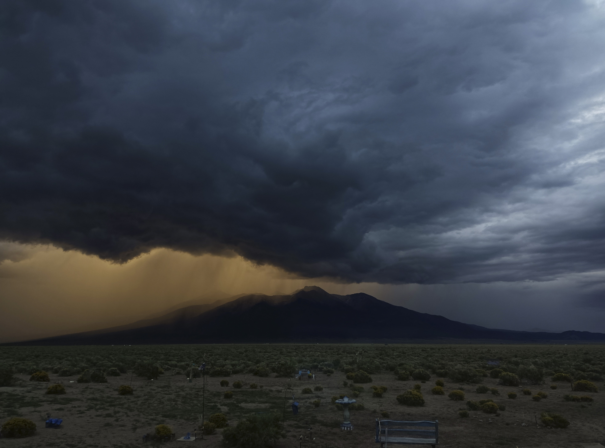"Aquesta fotografia la vaig fer en el meu primer viatge en solitari pels parcs naturals de Colorado, als Estats Units. Era l'hora de la posta de sol i una gran tempesta s'apropava pel Blanca Peak, prop d'Alamosa. Combinat amb el paratge desèrtic al peu d'una cadena muntanyosa de més de 4.000 metres, ho recordo com un dels millors paisatges que he vist en la meva vida."