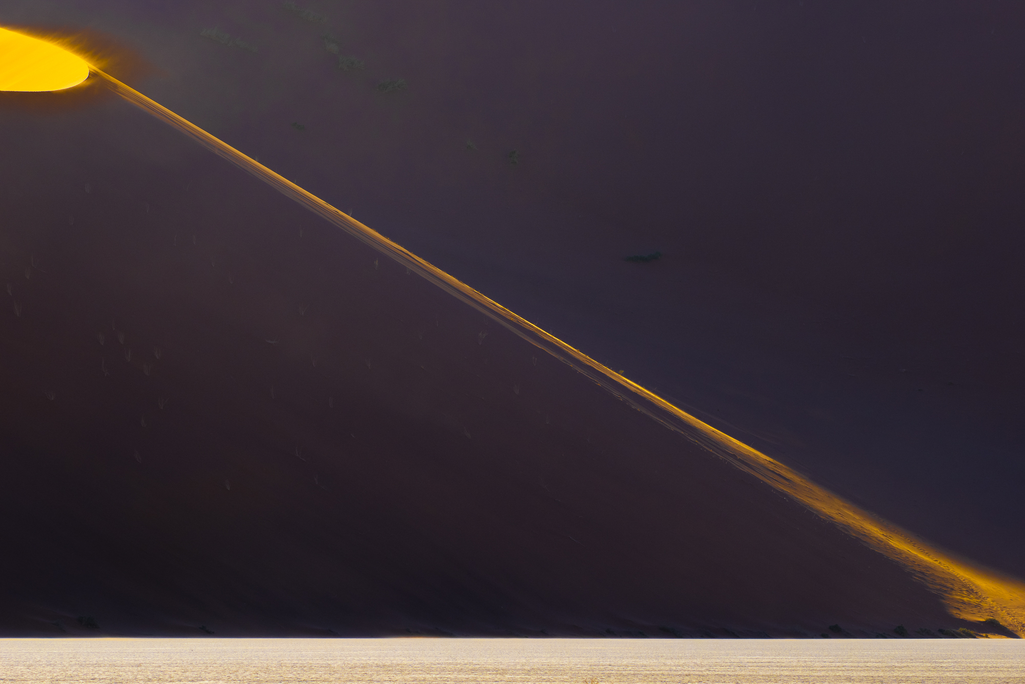 "... i vas mirant i vas veient les proporcions geomètriques que en dona la Natura just en el moment que el sol il·lumina la silueta de la duna, al Dead Vlei (Namibia)."