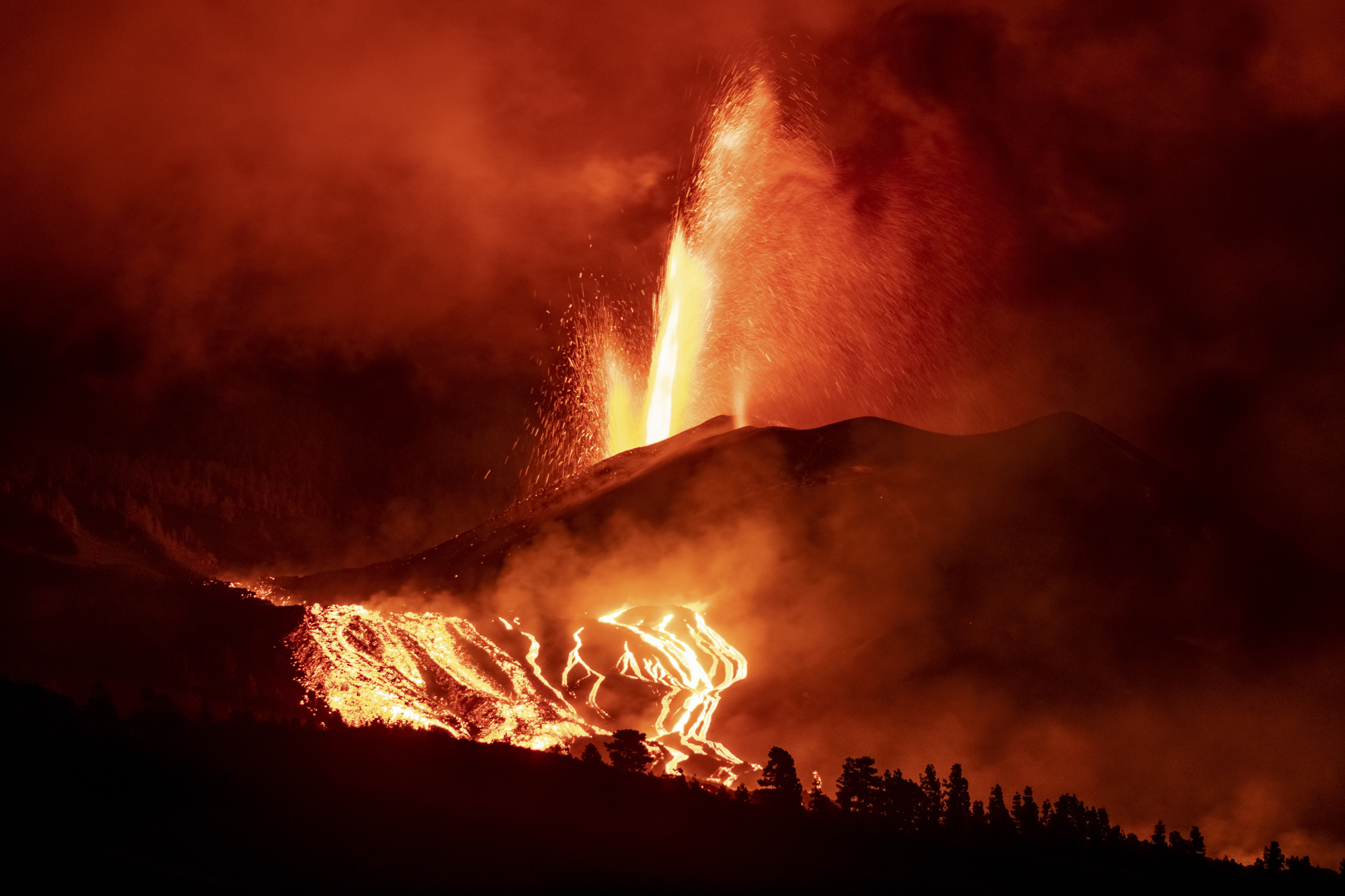 "A pesar de la furia desatada, traducida en destrucción, la erupción del volcán Tajogaite en La Palma en 2021 fue un recordatorio del violento proceso que ha dado lugar a las 'Islas Afortunadas'. Esta foto fue tomada hacia el final de la erupción, de 84 días de duración, momento en el que se registró un último repunte de actividad, desatando el crecimiento de un cono secundario, fuentes de lava y grandes coladas a consecuencia del colapso y reorganización de las paredes del volcán."Accèssit de Natura