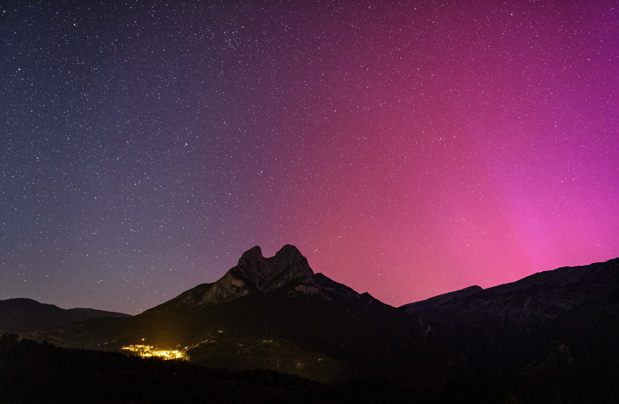 "La nit del 10 a l'11 de maig va passar un fenomen únic des del 1939: una aurora boreal visible des de Catalunya. Quan me n'anava a dormir a la 1 de la nit, obro el Twitter i veig desenes de fotos d'aurores, fins i tot més al sud. Canvi de plans i agafem el cotxe. El lloc icònic més a prop? El Pedraforca. De pujada tot era fosc i pensava que no veuria res, però quan arribo i faig el primer clic amb la càmera... uau! El cel és tot rosa! La mateixa emoció que quan vàrem fotografiar la Via Làctia per primer cop. Quin espectacle!"
