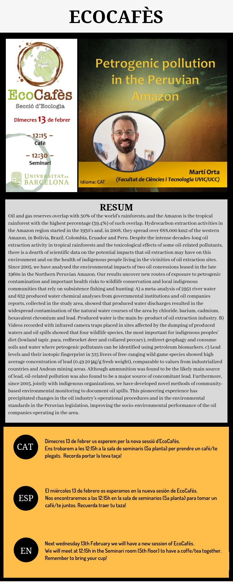 EcoCafès: Martí Orta, «Petrogenic pollution in the peruvian amazon»