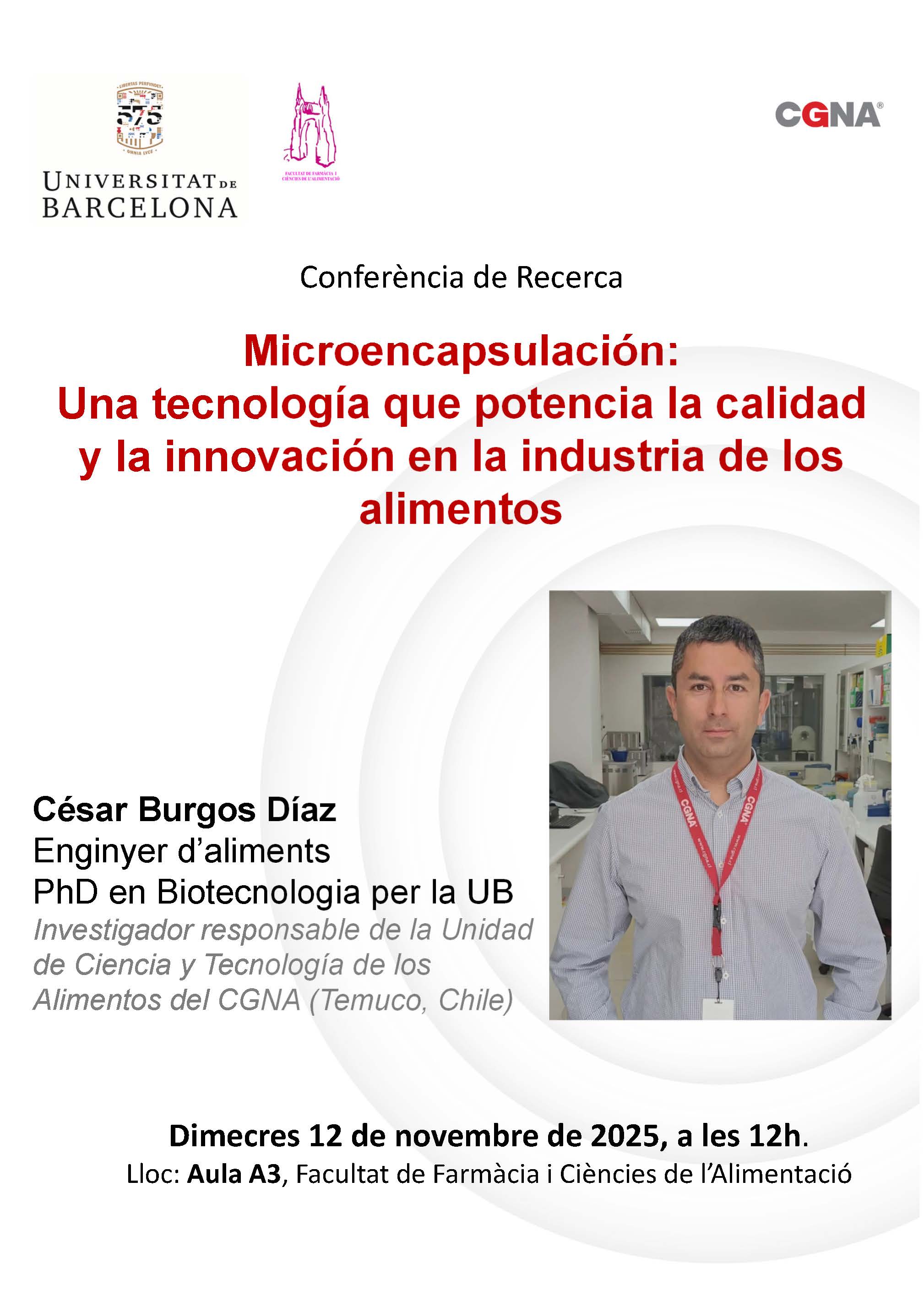 Conferència del Dr. César Burgos Díaz: "Microencapsulación: Una tecnología que potencia la calidad y la innovación en la industria de los alimentos".