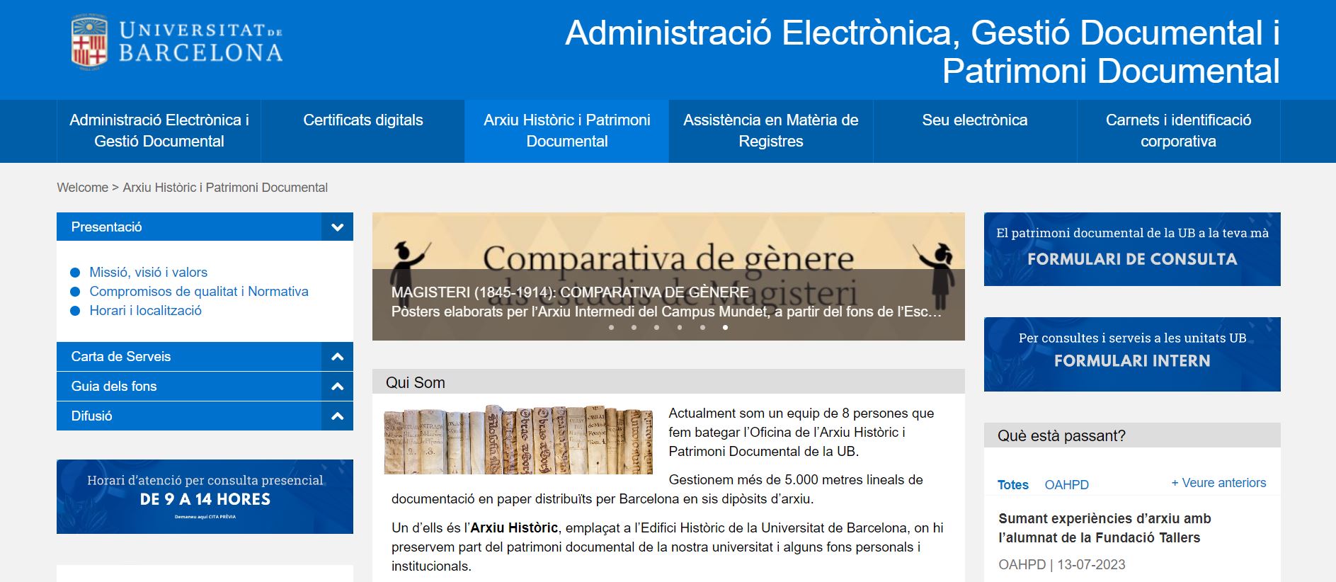 El dimecres 11 d'octubre s'ha donat el tret de sortida a la nova pàgina web de l'Oficina de l'Arxiu Històric i Patrimoni Documental, oficina que forma part del Servei d'Administració Electrònica, Gestió Documental i Patrimoni Documental.