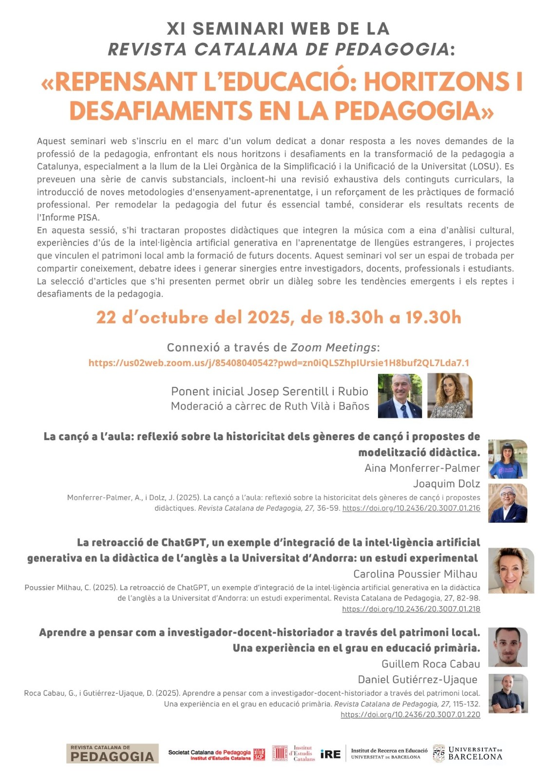 Les sessions es desenvoluparan en format híbrid —en línia i presencialment— i en horari de tarda, per tal d’afavorir la màxima participació de l'estudiantat.