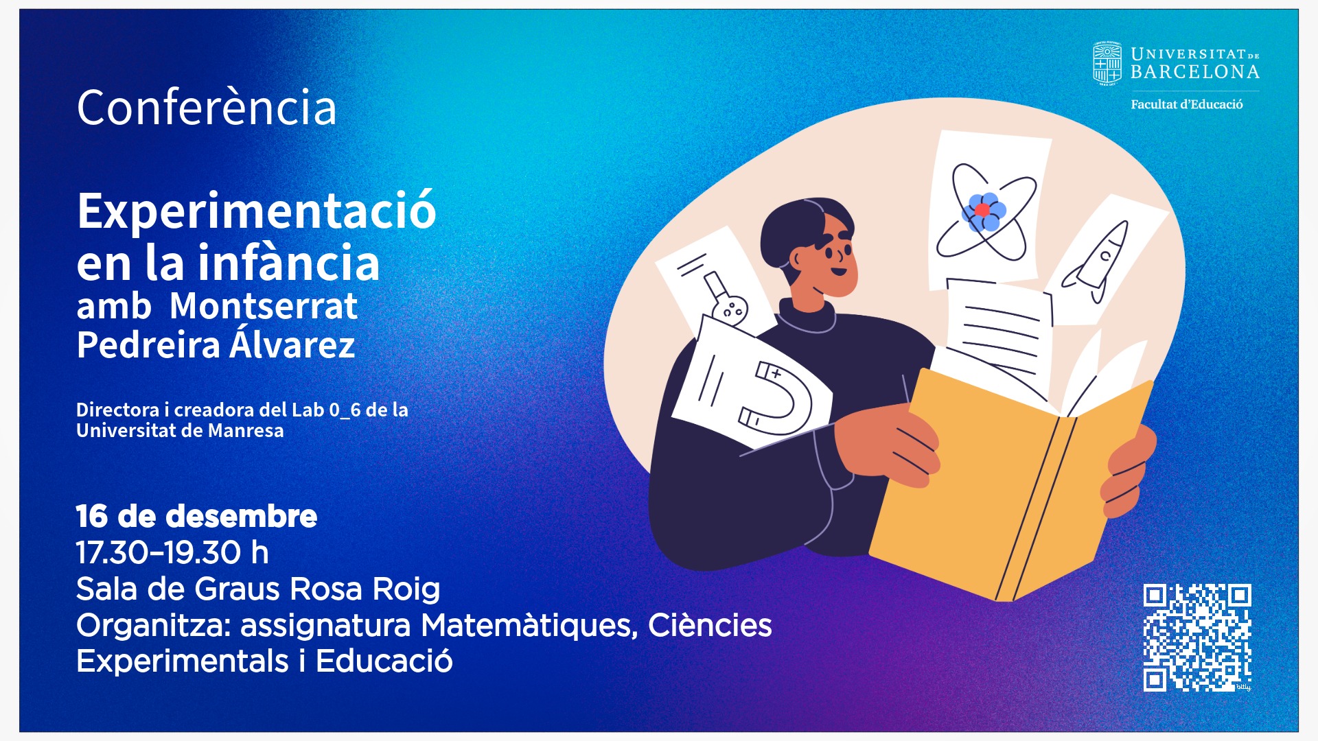 El pròxim 16 de desembre de 2025, l’equip docent de l’assignatura Matemàtiques, Ciències Experimentals i Educació organitza la conferència “Experimentació en la infància”, adreçada especialment a l’alumnat d’Educació Infantil i oberta a tota la comunitat de la Facultat d’Educació.