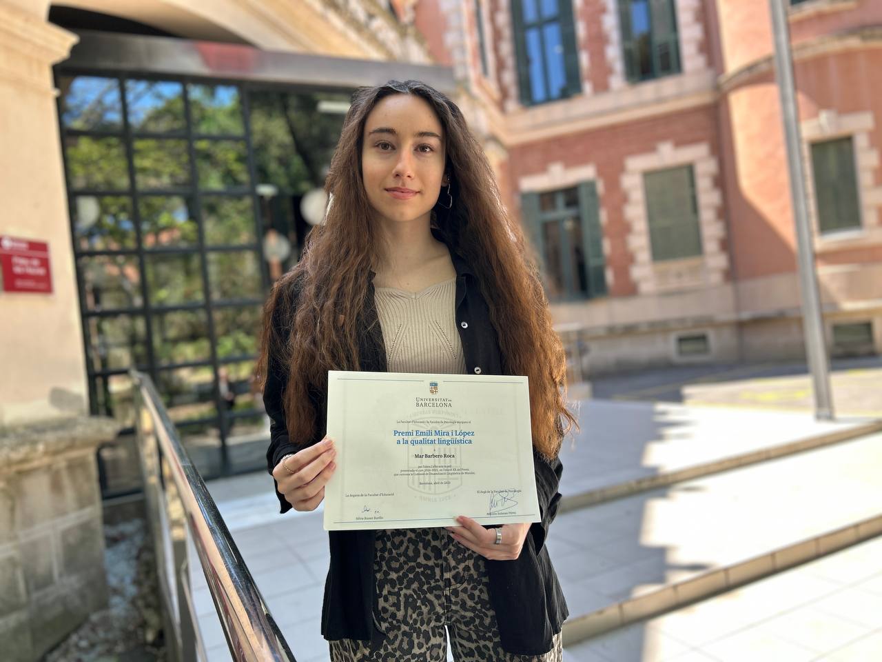 Un dels moments més destacats va ser el lliurament del I Premi al millor treball final de màster escrit en català de la Facultat d’Educació. El guardó va recaure en Daniel Colom, estudiant del màster en Formació del Professorat de Secundària, pel treball Ecofeminisme i literatura catalana: fomentar el pensament crític a batxillerat. El jurat en va valorar la capacitat comunicativa, la correcció lingüística i l’ús acurat de la terminologia. El tutor del treball, el doctor Andreu Bosch, va recollir el premi en nom del guanyador, absent per motius personals.