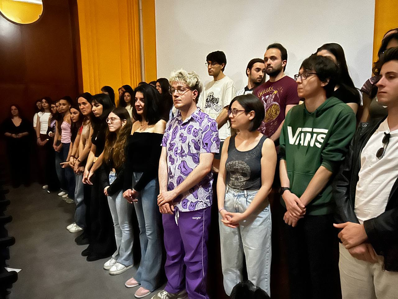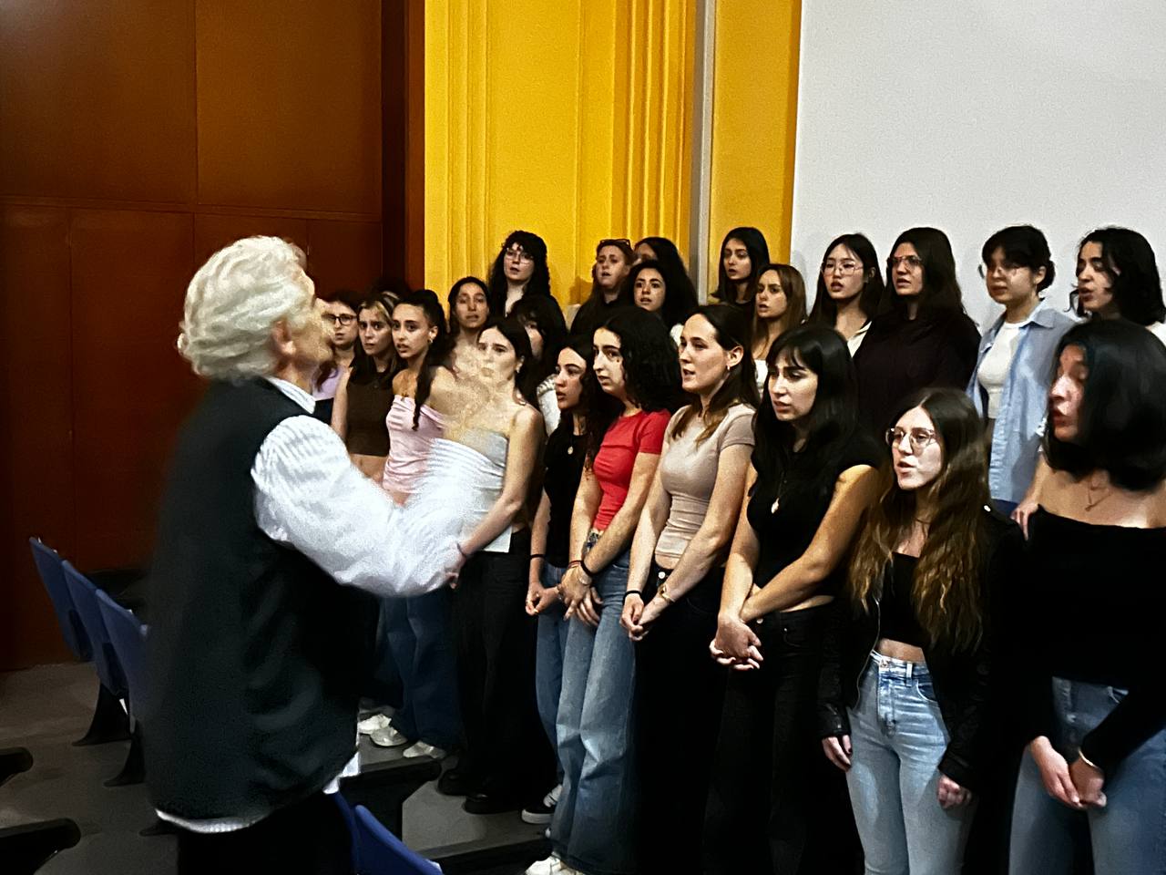 Sense llum, però amb entusiasme, la coral del Campus Mundet va inaugurar l’acte amb dues peces a cappella: L’Empordà, una sardana amb lletra de Joan Maragall i música d’Enric Morera, i Mariner de terra endins, una havanera clàssica amb text de Narcisa Oliver i música de Josep Bastons.