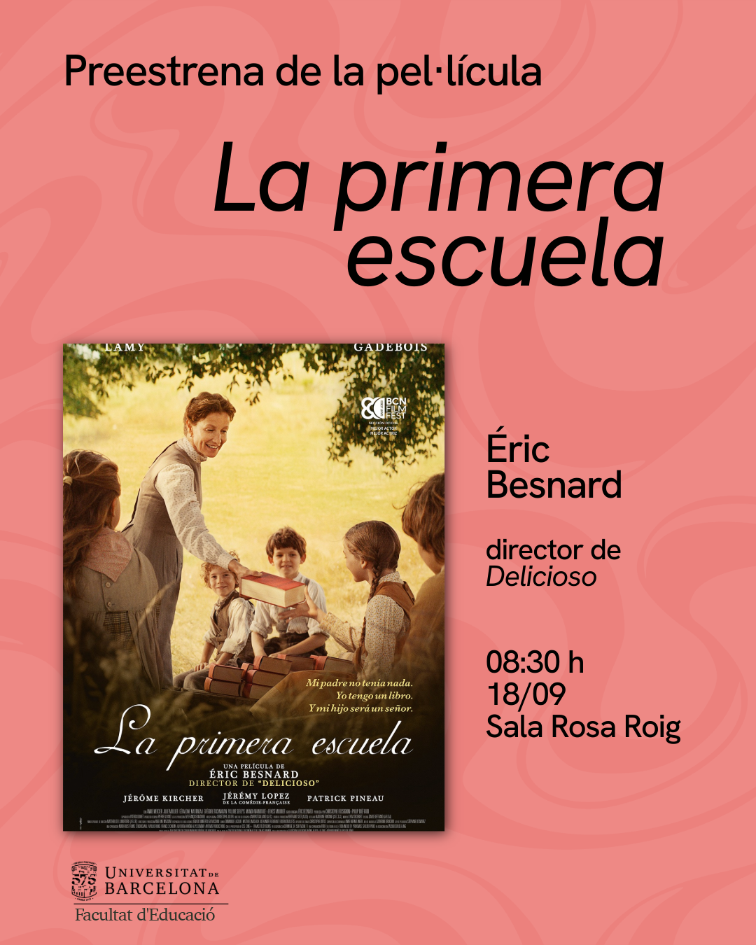 En este sentido, en el marco de la asignatura Fundamentos Didácticos de la Acción Socioeducativa del Grado en Educación Social, el 18 de septiembre a las 8:30 en la sala Rosa Roig, se podrá ver el preestreno de la película La primera escuela (Francia, 2024), dirigida por Éric Besnard, que se estrenara en cines el 19 de setiembre.