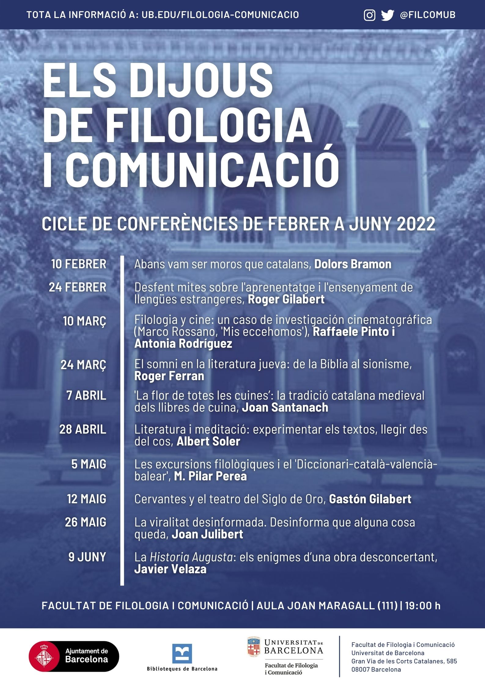 La Facultat va posar en marxa durant el curs 2018-2019 el cicle de divulgació «Els Dijous de Filologia», que l’any següent, a causa del canvi de nom del centre, va passar a anomenar-se «Els Dijous de Filologia i Comunicació». Aquesta activitat té l'objectiu d'obrir les portes de la Facultat a tota la ciutadania de Barcelona per donar a conèixer la recerca que s’hi fa.