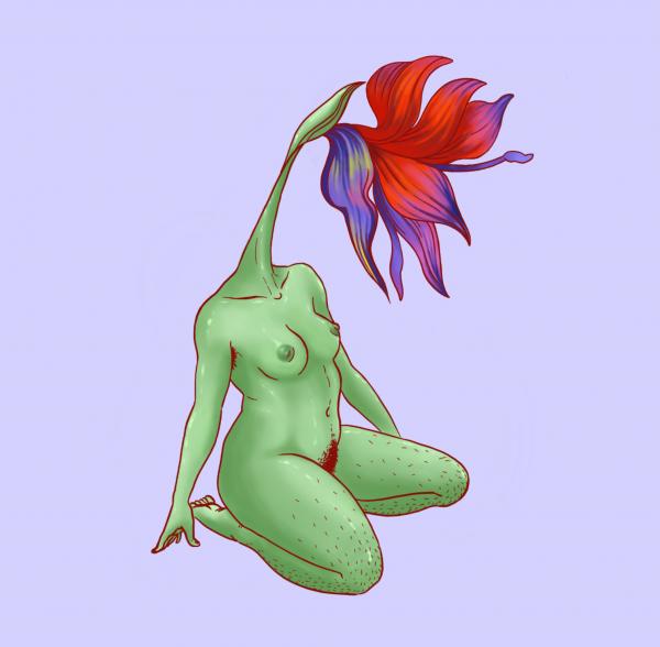 Las plantas son seres vivos con propiedades y capacidades múltiples, pero en este caso las que a mí más me interesan son sus métodos y órganos de reproducción. Así como los animales, en su mayoría, son clasificados por la ciencia entre machos y hembras según sus órganos sexuales, las plantas no son tan fácilmente clasificables. Estas tienen la capacidad de reproducirse de forma asexual, es decir sin la necesidad de que un órgano sexual o un individuo ajeno contribuya en el proceso. Por ejemplo, plantas como los cactus, el jazmín o el clavel pueden reproducirse perfectamente a través de la fragmentación celular o los llamados tallos de los cuales se desarrollan individuos hijos o en el caso de los helechos o filicopsida a través de esporas. A parte, en el caso de las plantas que se reproducen de forma sexual, muchas de estas poseen los dos órganos sexuales (masculino/femenino) en un mismo individuo, ya sea en flores separadas o en una misma flor hermafrodita, a esto además se le suma la capacidad de muchas especies de autofecundarse. Estas características rompen por completo con los esquemas de los argumentos naturalistas o la “Actitud natural” a la que se refiere Harold Garfinkel en el capítulo "Confundir el género (Confounding gender)" de su libro "Debate Feminista" (1999), esta establece la creencia de que existen dos géneros que se corresponden con dos sexos (genital-corporal), es decir pene o órgano sexual masculino con hombre-macho y vagina o órgano sexual femenino con mujer-hembra, hablando siempre desde la perspectiva heteronormativa en que un ser solo es perteneciente de un sexo y su género correspondiente. De este modo mi propuesta de simbiosis entre planta y humano permite generar imaginarios de nuevas corporalidades de carácter intersexual a las que ni la ciencia ni la medicina pueden atribuir un género concreto creando un cortocircuito en la normativa corporal heteropatriarcal establecida.