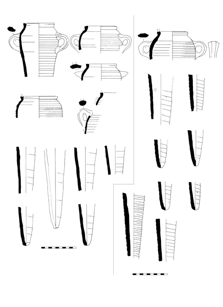 Five Schöne-Mau (Pompeii) XV/Peacock and Williams Class 12 so-called ‘carrot’ amphorae were sampled from the stores in Pompeii (figures 1-4), where they appear to be not common, in contrast to east Cilician Agora G 198. One of the major production centres of these small, narrow containers in the 1st century AD was Beirut, just outside the Hellenistic walls (Site BEY 015), where excavations discovered a workshop producing not only these (figure 5) but also the Beirut amphora type (which carried wine: Woodworth and Reynolds 2021) and complex range of other forms including Reynolds AM 72, a form probably imitating the Dressel 14 fish amphora, as well as a wide range of cooking pots, bowls, lids, drains and thin-walled wares (Reynolds et al. 2008-2009).