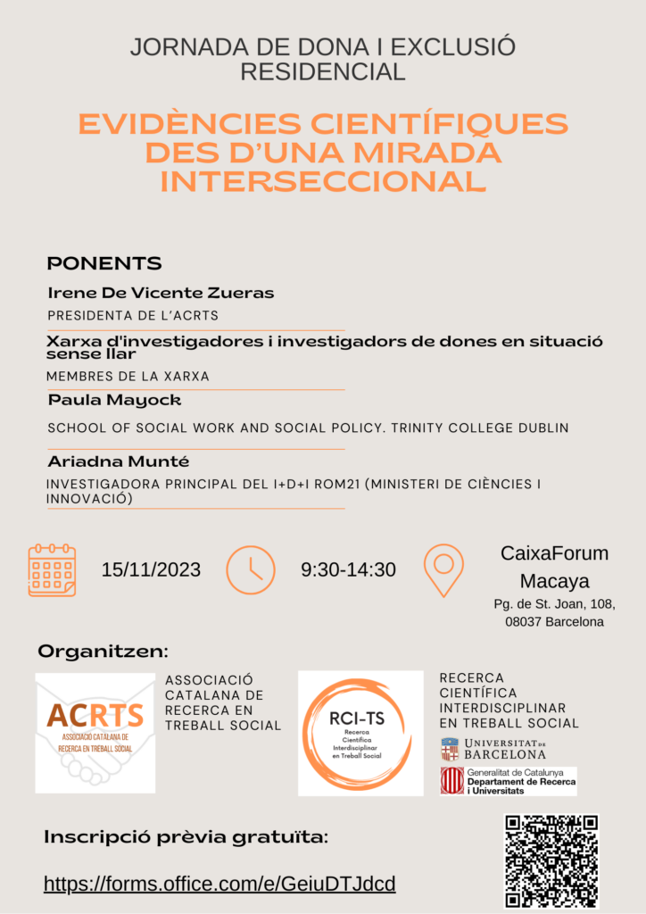 El pròxim 15 de novembre de 2023 es farà al Palau Macaya la Jornada de dona i exclusió residencial. Evidències científiques des d’una mirada interseccional. Aquesta jornada serà organitzada pel RCI-TS en col·laboració amb l’ACRTS (Associació Catalana de Recerca en Treball Social). En aquesta jornada es presentaran evidències científiques sobre un tema pel qual la …