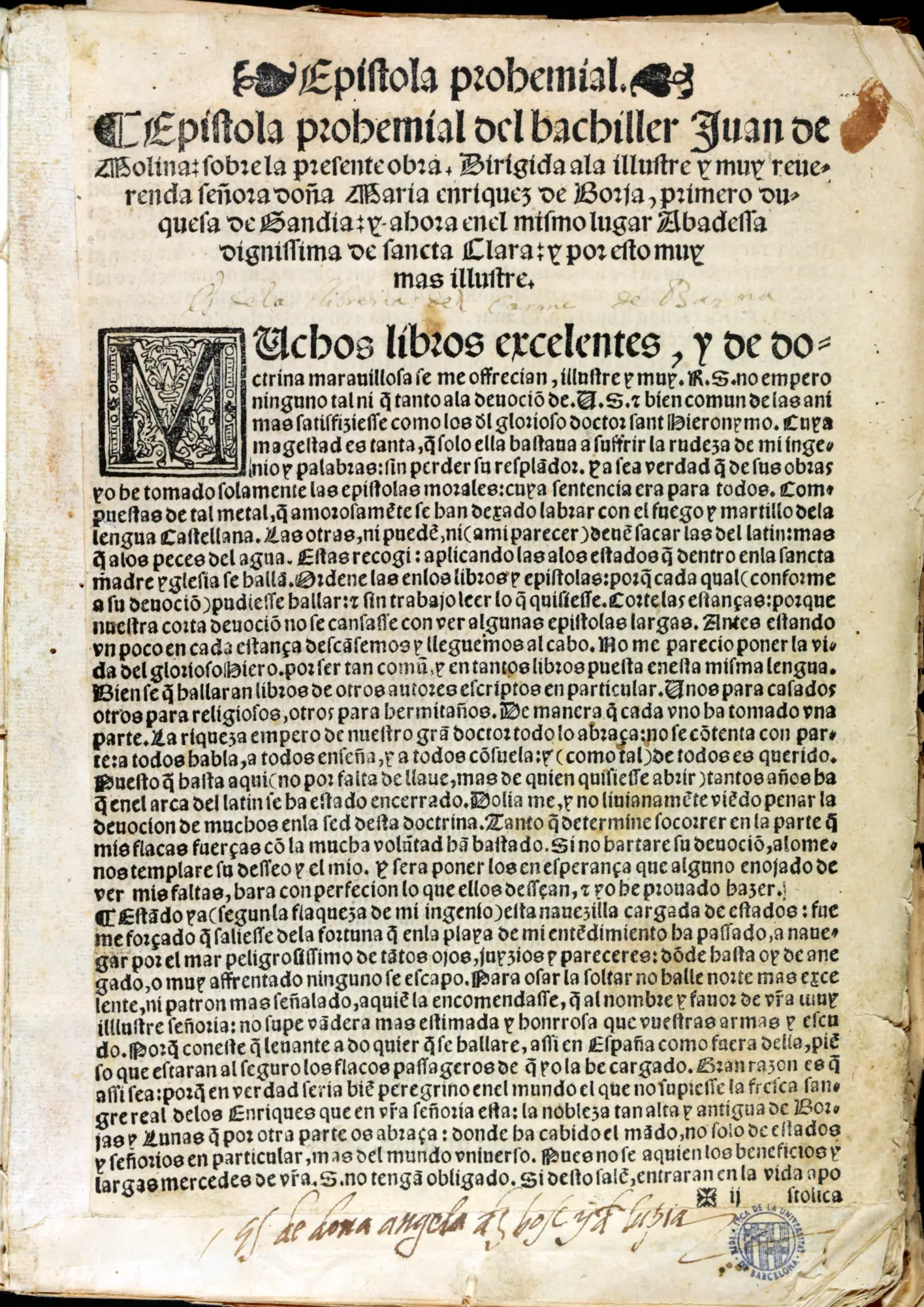 Per a una dona noble amb aquestes sòlides arrels, posseir -i llegir- les cartes de sant Jeroni era fonamental com a prova d'haver assolit una excel·lent educació moral, i alhora de formar part de la renovació intel·lectual de les elits a partir del Renaixement. Sant Jeroni (segle IV) va ser un dels primers grans doctors de l'Església. Les seves ensenyances sobre costums i exemplaritat femenines van ser essencials en la construcció de la doctrina i anaven adreçades a un grup de dones de la noblesa romana que es va convertir i el va seguir.