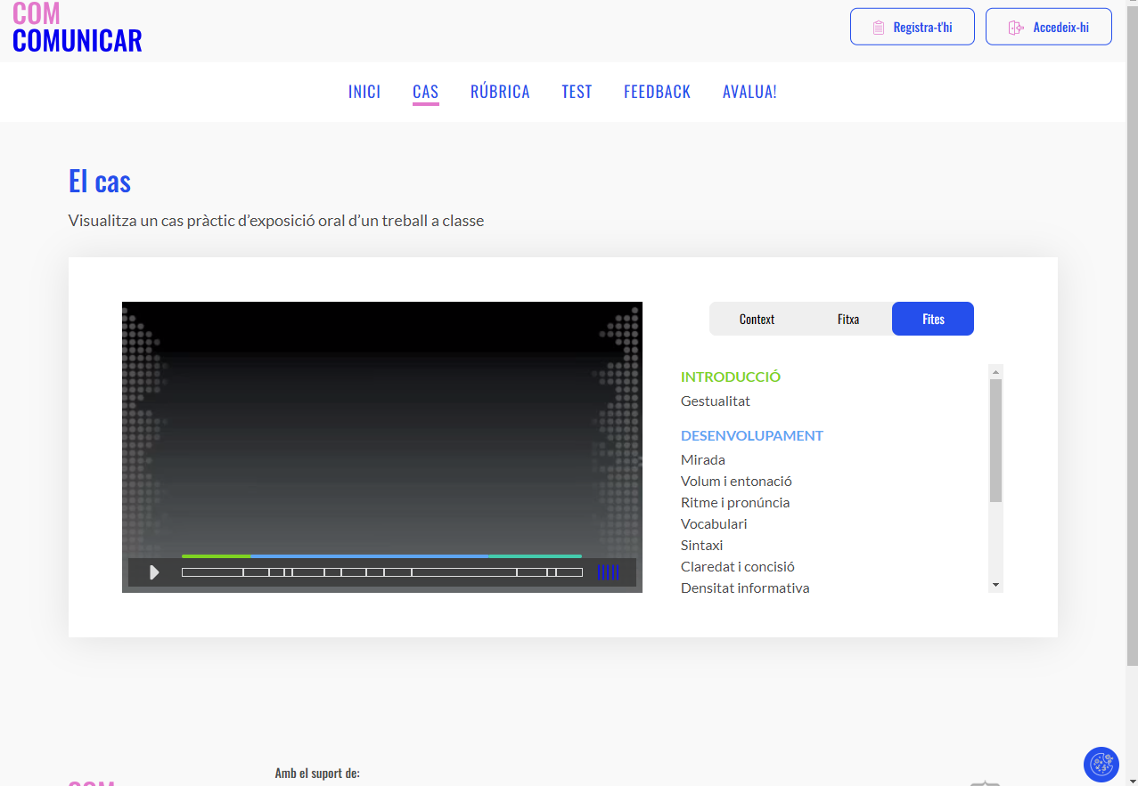 D’entrada, el web recull indicacions pensades sobretot per a l’alumnat, amb consells pràctics per comunicar bé en format de videoguies, documents explicatius i rúbriques d’avaluació. Per al professorat, però, també hi ha rúbriques de mostra que permeten avaluar i potenciar les habilitats dels alumnes, amb la possibilitat de personalitzar-les i adaptar-les a les necessitats de cada docent.