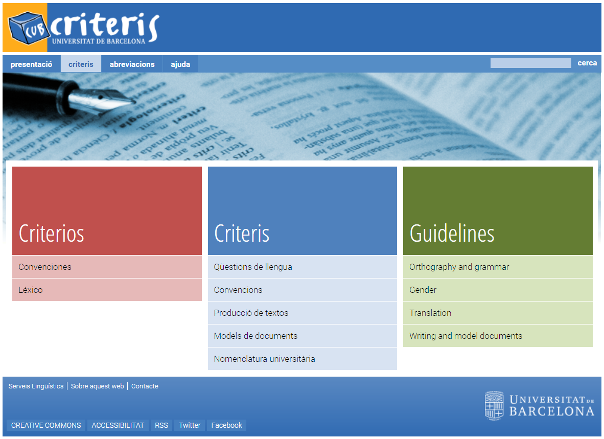 La tercera edició del llibre d’estil de la Universitat de Barcelona, el CUB, a més de mantenir les millores d’anteriors edicions i de contenir un conjunt de criteris lingüístics, bibliogràfics, d’estil i convencions redactats pels tècnics dels Serveis Lingüístics amb l’objectiu de millorar la qualitat lingüística dels textos elaborats per la comunitat universitària, incorpora una entrada nova als criteris que palesa millor el multilingüisme de la Universitat de Barcelona i permet distingir més clarament els llibres d’estil de les diferents llengües: català, castellà i anglès.
