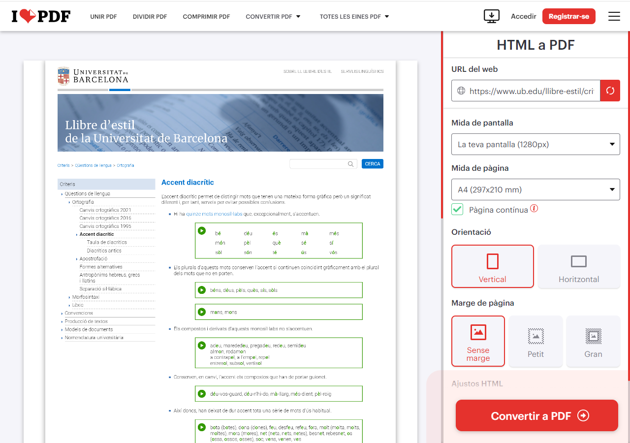 Ara bé, el que ens agrada més de l’iLovePDF és que els continguts estan en català! De fet, la plataforma està traduïda a vint-i-cinc llengües.