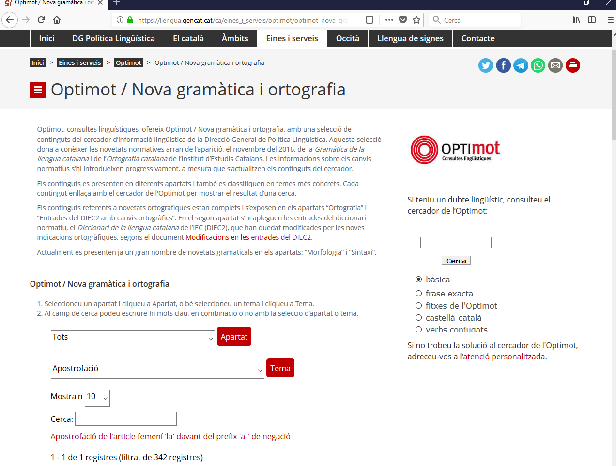 Amb motiu de la nova normativa de l’Institut d’Estudis Catalans, l’Optimot es va posar al dia i va inaugurar un nou producte per àmbits, Optimot / Nova gramàtica i ortografia, un cercador que ofereix una selecció de continguts per donar a conèixer les novetats de la gramàtica i l’ortografia del 2016.