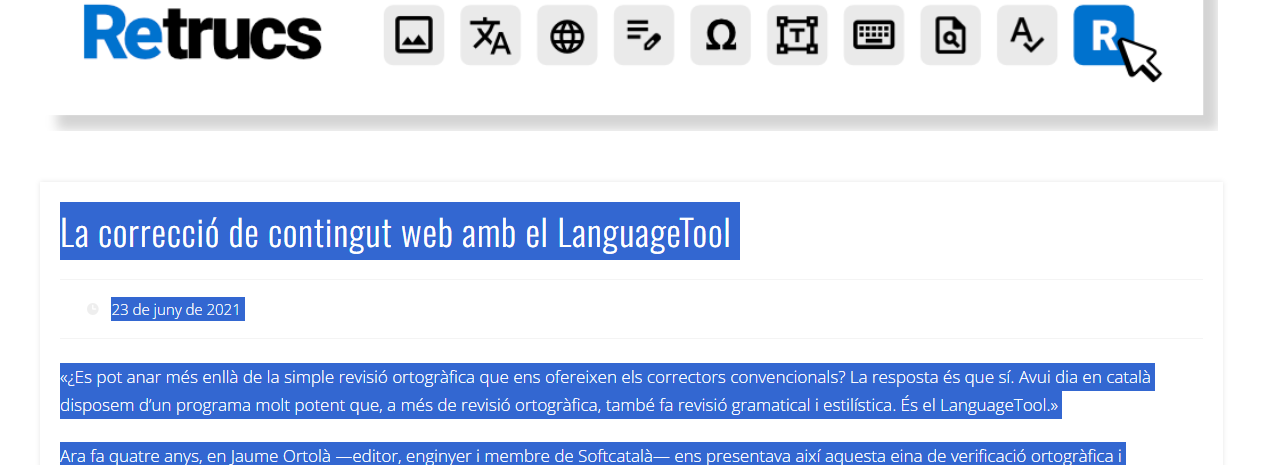 Una d’aquestes eines per estalviar temps és el Comptador de paraules, una extensió gratuïta del Chrome. Un cop instal·lada, només heu de seleccionar el fragment que us interessa, fer-hi clic amb el botó dret del ratolí i triar l’opció corresponent. A l’instant us diu el nombre de paraules i caràcters, la longitud mitjana i la de la paraula més llarga.