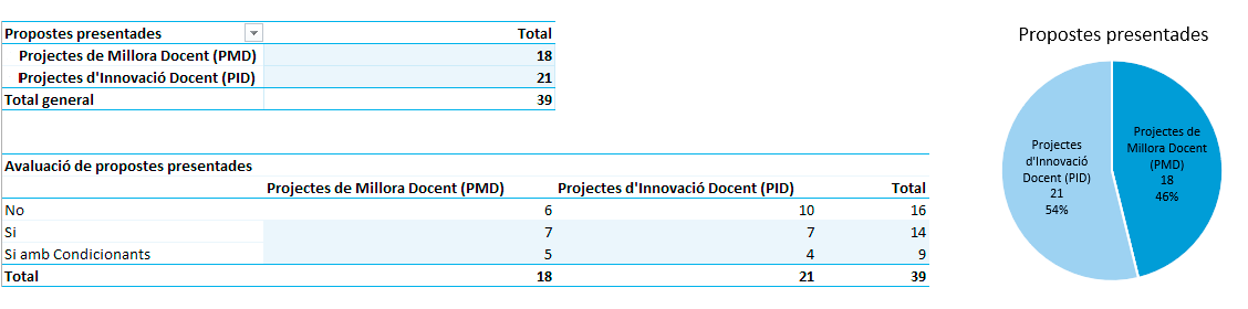 De les 39 propostes, 18 ho han fet a la convocatòria de PMD i 21 a la convocatòria de PID.