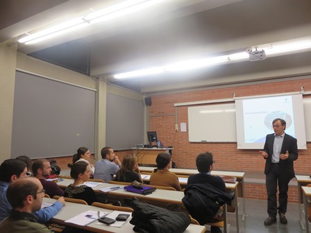 Mar 17. 2015: Mr. J. Gorina (Zurich Spain Human Resource Department) conducted the second and last part of the workshop on skills for speaking in public, aimed at the students of the second year of the Master in Actuarial and Finance Science. The two parts of the course (Feb. 17 and Mar. 17) were held in classroom 103 from 19:00 to 21:00 at the Faculty of Economics and Business of the University of Barcelona.