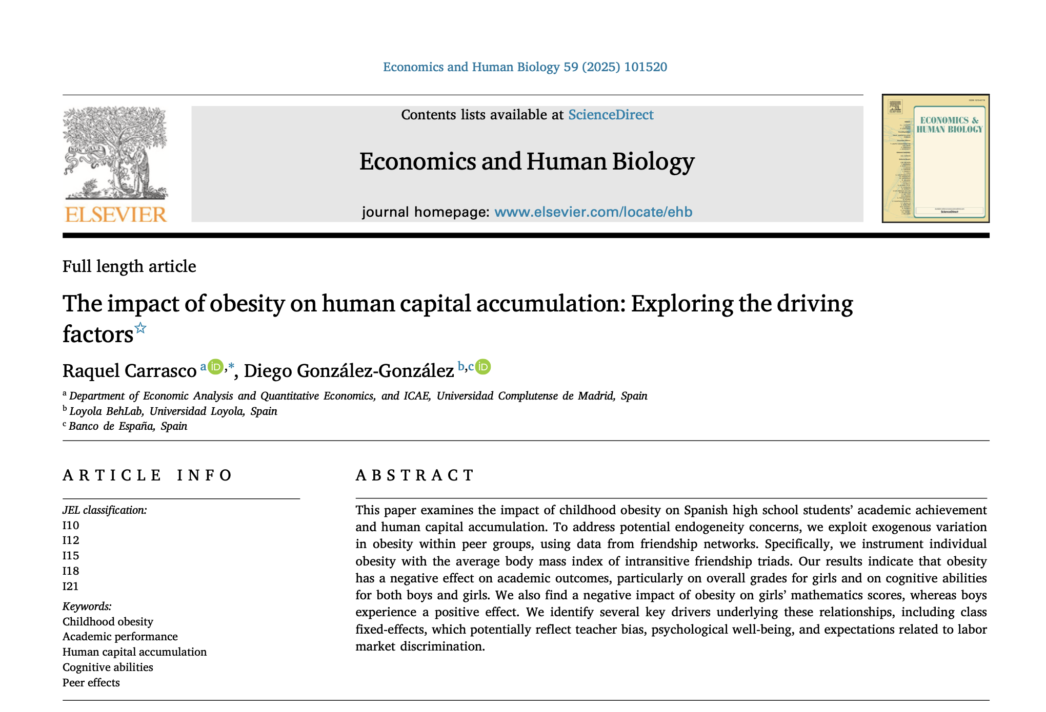 Abstract This paper examines the impact of childhood obesity on Spanish high school students’ academic achievement and human capital accumulation. To address potential endogeneity concerns,…