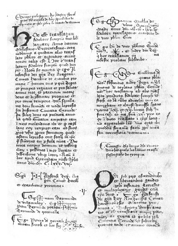 Arxiu Històric de la Ciutat de Girona, Llibre Vermell, f. 9r. (Arnall i Pons, L’escriptura…, làm. 150).