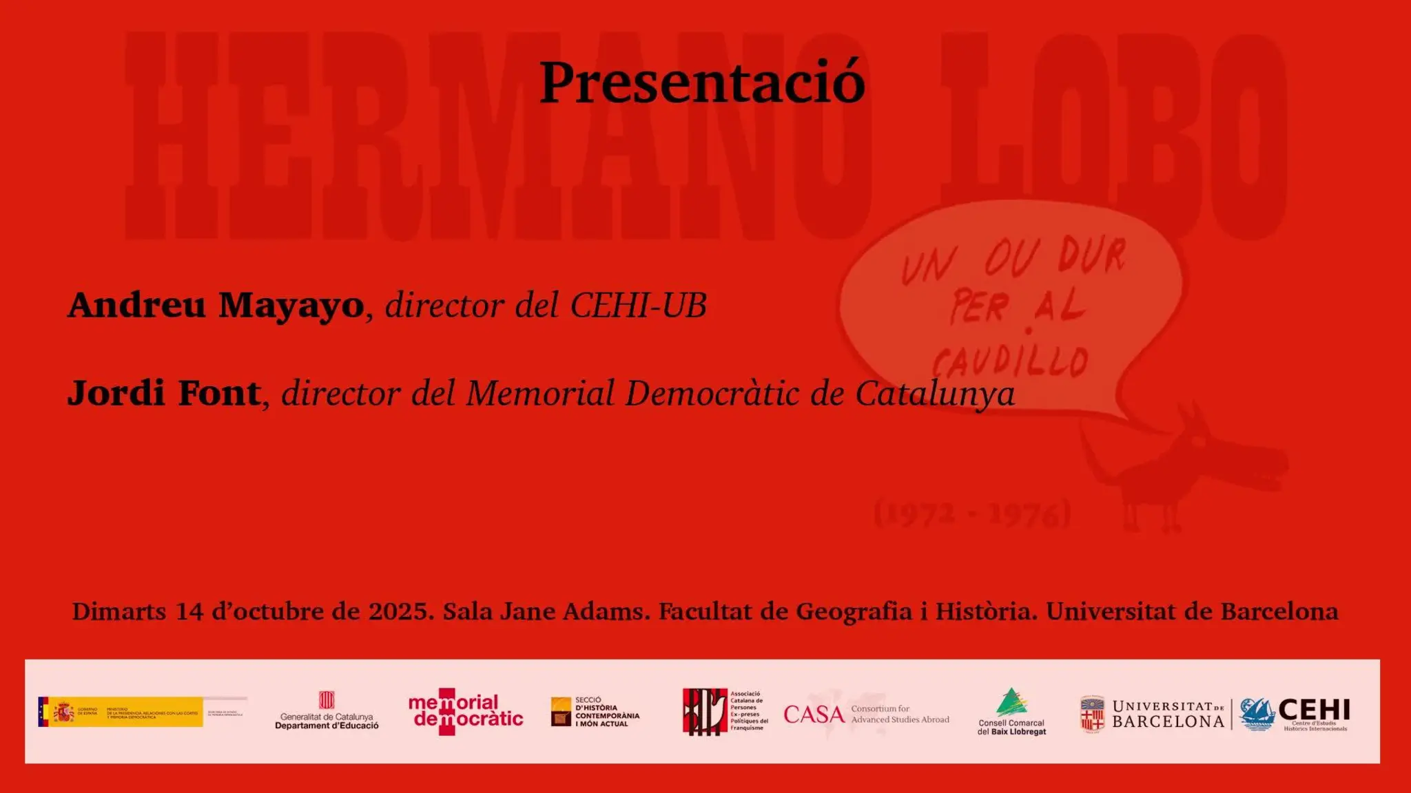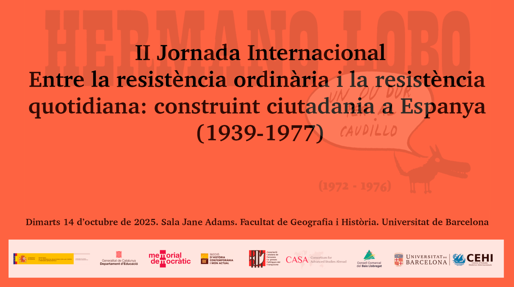 Aquest any, la jornada titulada "Entre la resistència ordinària i la resistència quotidiana: construint ciutadania a Espanya (1939-1977)", explira en el context actual, marcat per una conversa pública en què s'expressen tant formes de blanquejament de la dictadura com de negacionisme del valor de la conquesta de la democràcia, l'objecte del nostre projecte és una qüestió no sols necessària sinó també urgent. En particular, perquè després de les lectures i interpretacions historiogràfiques recents sobre dictadura