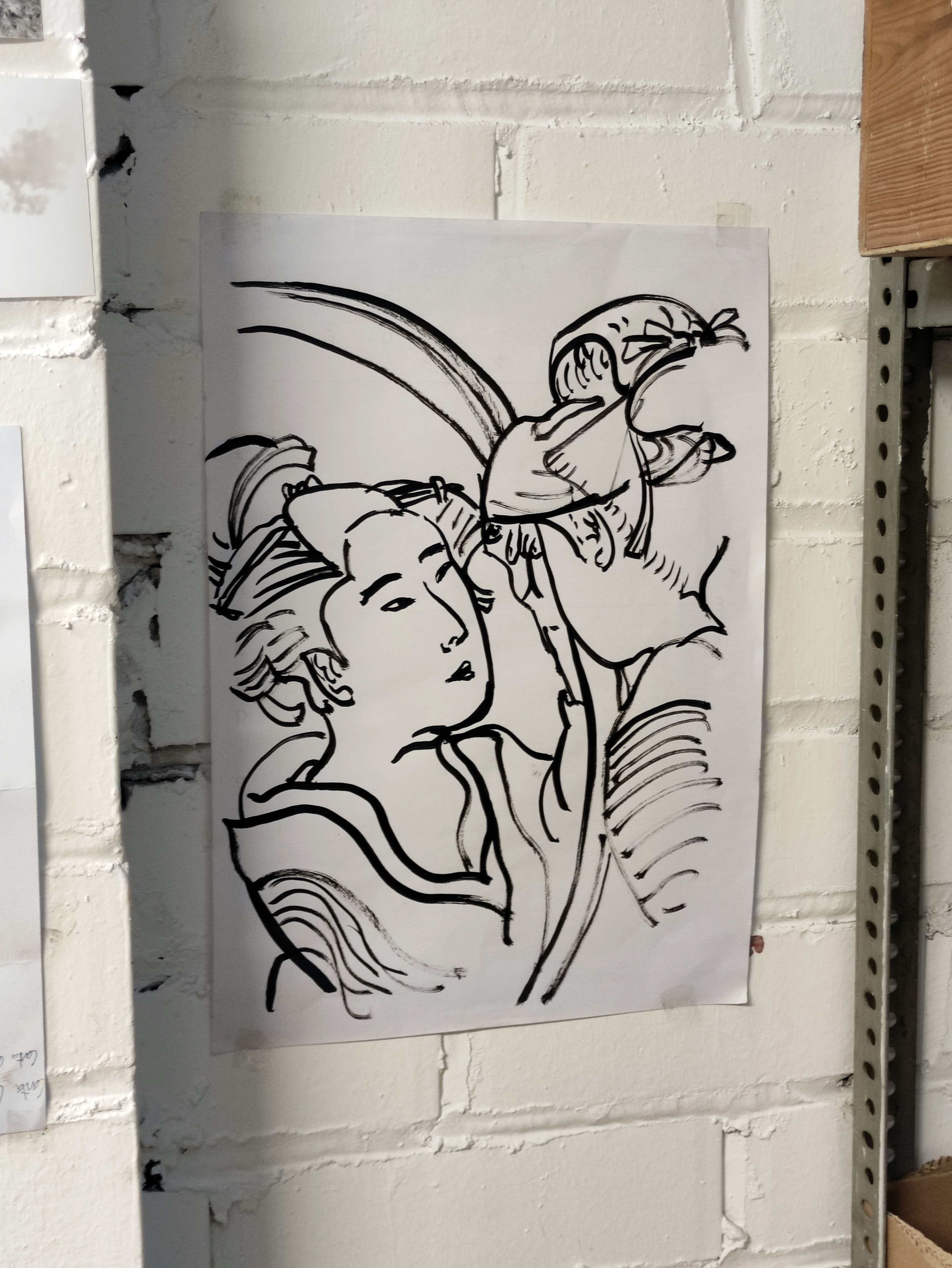 El traçat de tinta pot recordar la delicadesa de l’art Ukiyo, n’està inspirat, especialment en els quaderns de proves d’Hokusai: Hokusai Manga. Les formes de l’atzavara es porten bé amb la línia fina i irregular de l’estil japonès a causa de la sinuositat de les seves corbes.
